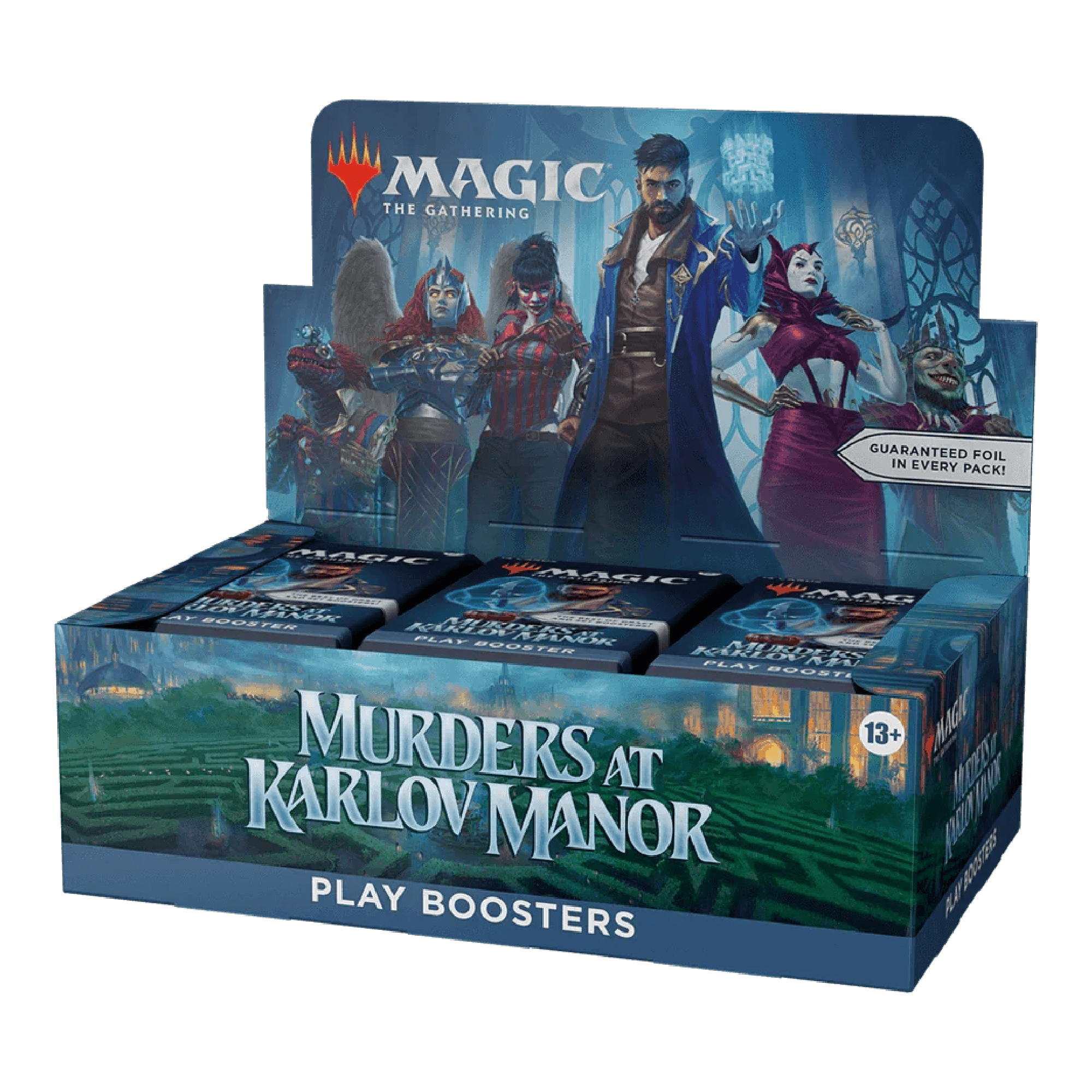 Murder! Mystery! Magic! Step into Ravnica as a wave of shocking murders sends the city’s best detectives chasing clues and unmasking a mastermind. The Murders at Karlov Manor Play Booster Box delivers explosive pack-opening excitement and is built for play—especially Limited events like Draft.